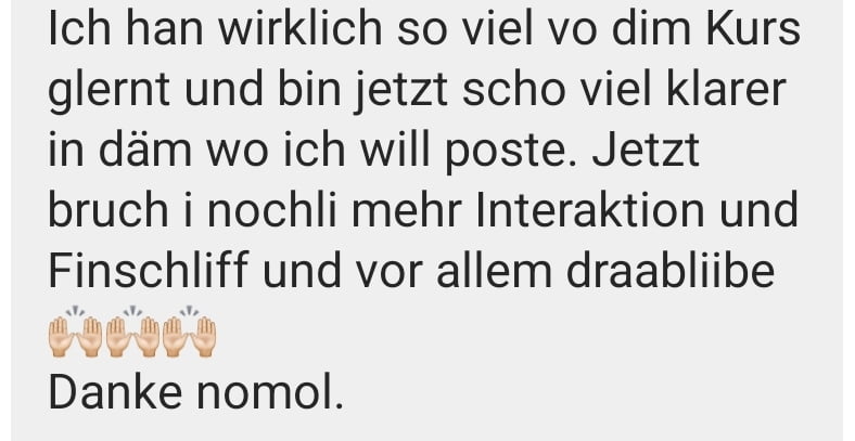 “I really learned so much from this course and am already so much clearer in what I want to post. Now I just need some more interaction & fine tuning and especially consistency. Thank you again!”